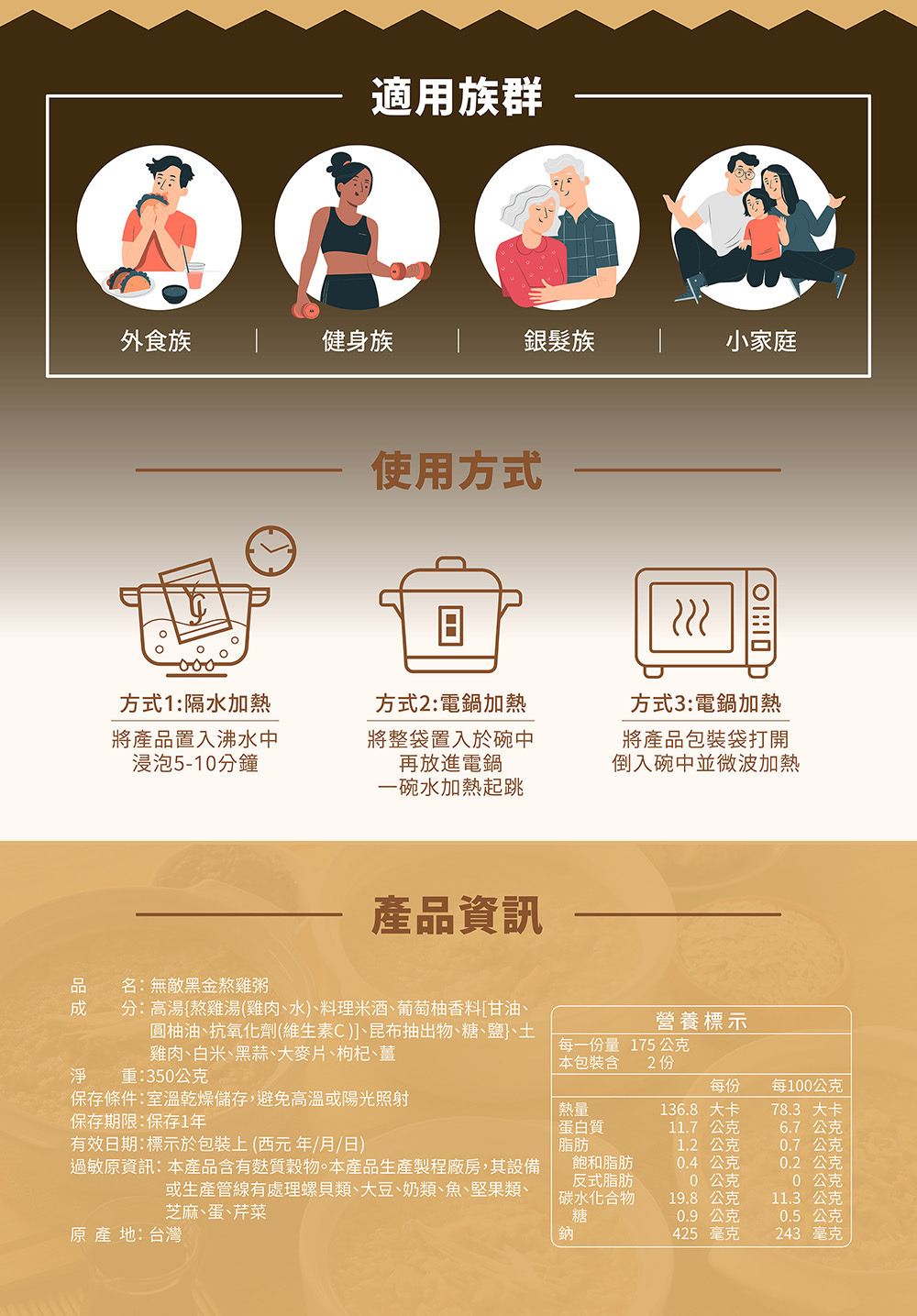 【晨露】樂活事典-無敵黑金熬雞粥 350g/包│元進莊美食購