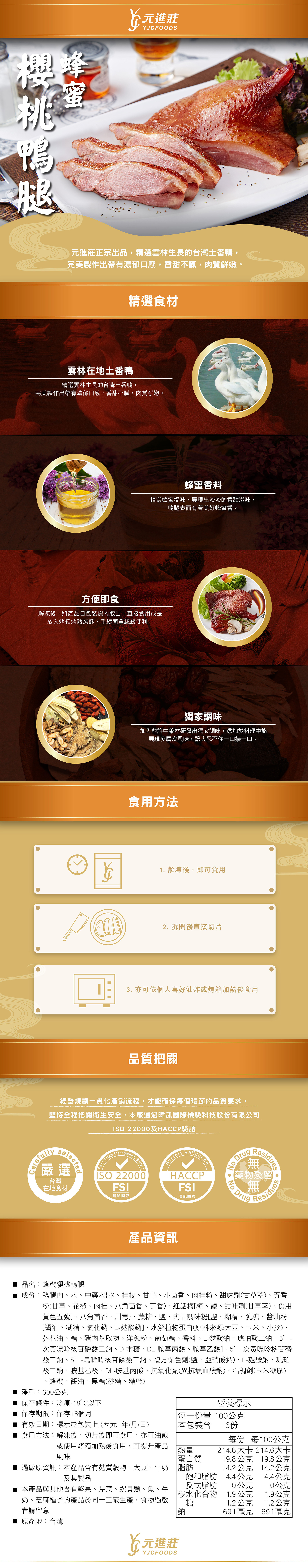 【元采珍饌】蜂蜜櫻桃鴨腿 600g/隻│元進莊美食購