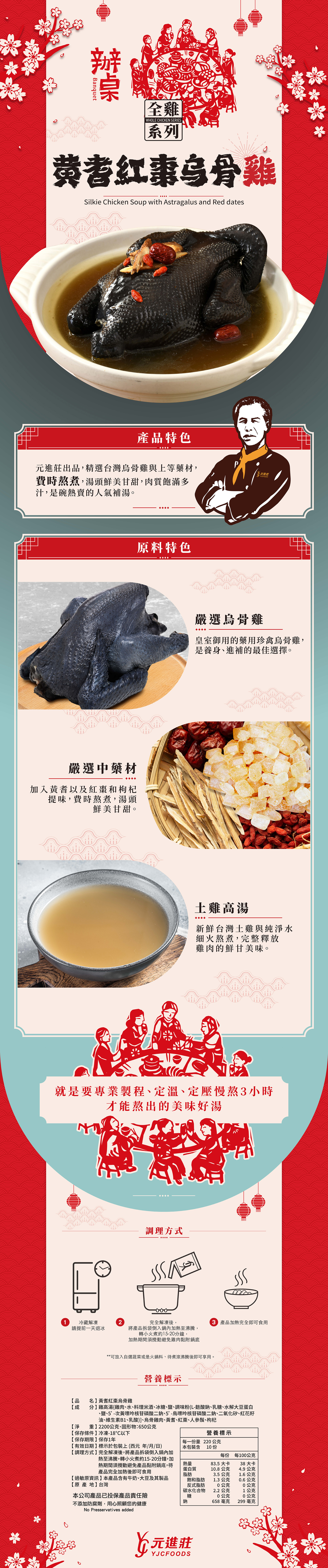 【辦桌】全隻湯品-黃耆紅棗烏骨雞湯 2200g/盒│元進莊美食購