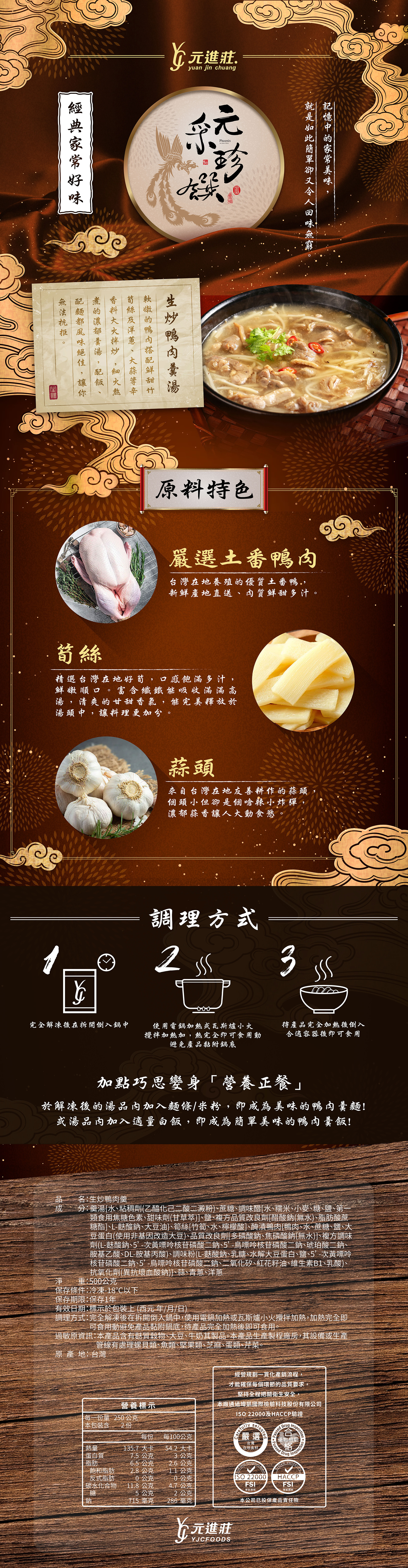 【元采珍饌】 獨享小湯-生炒鴨肉羹500g/盒│元進莊美食購