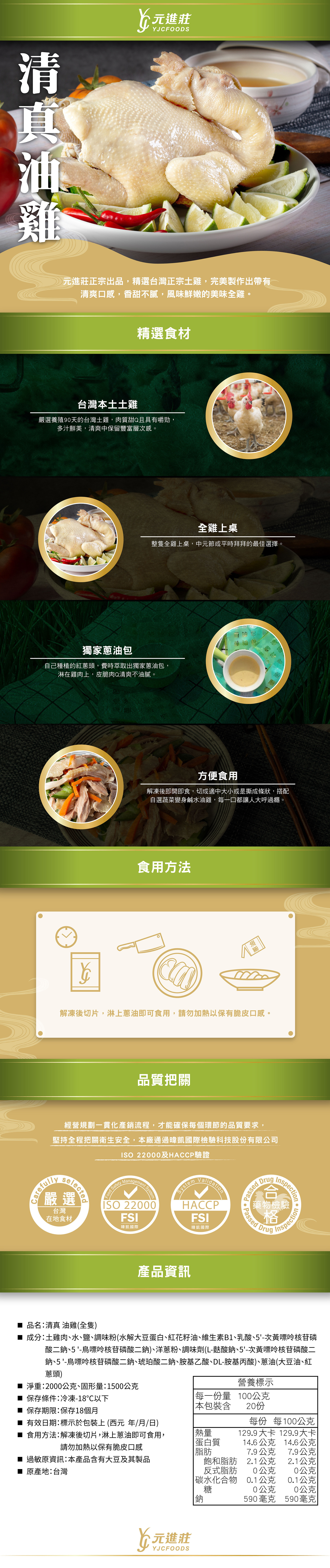 【辦桌】清真 蔥香油全雞 1500g/盒│元進莊美食購