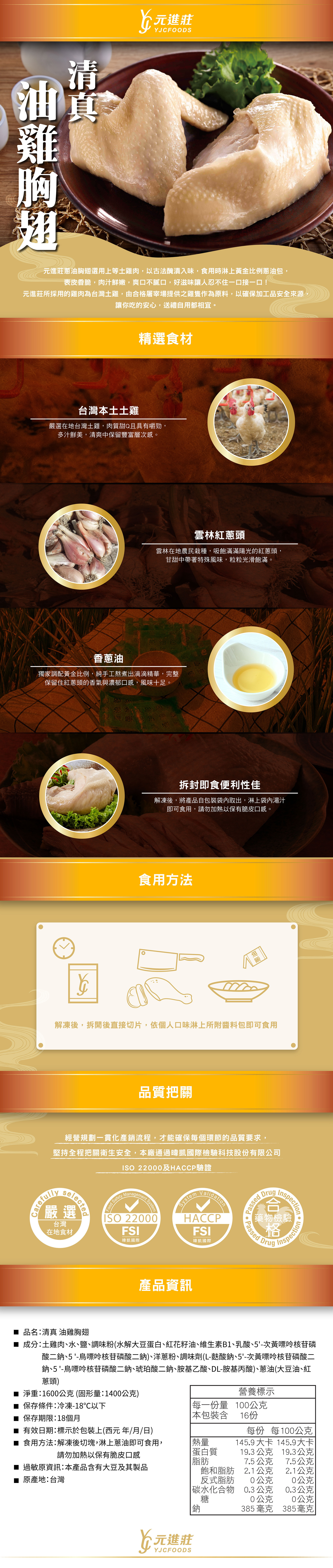 【元采珍饌】清真 油雞胸翅 4胸4翅│元進莊美食購