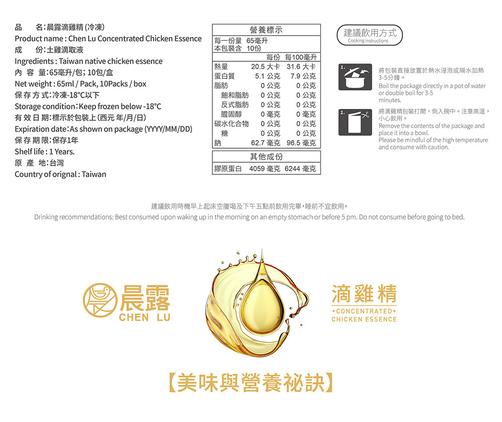 【晨露】滴雞精 冷凍 65ml*10包/盒│元進莊美食購