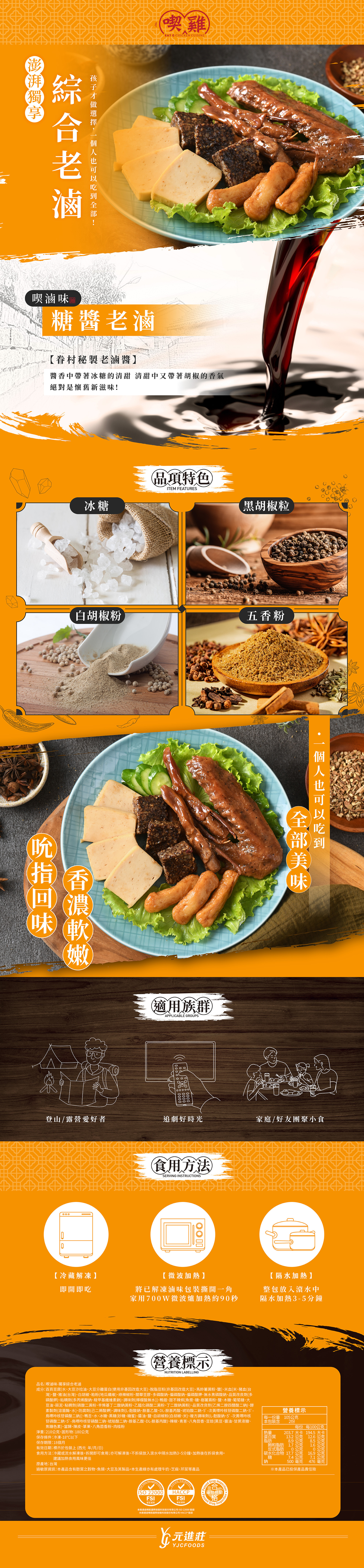 【喫雞】糖醬老滷 獨享綜合組 210g/包│元進莊美食購