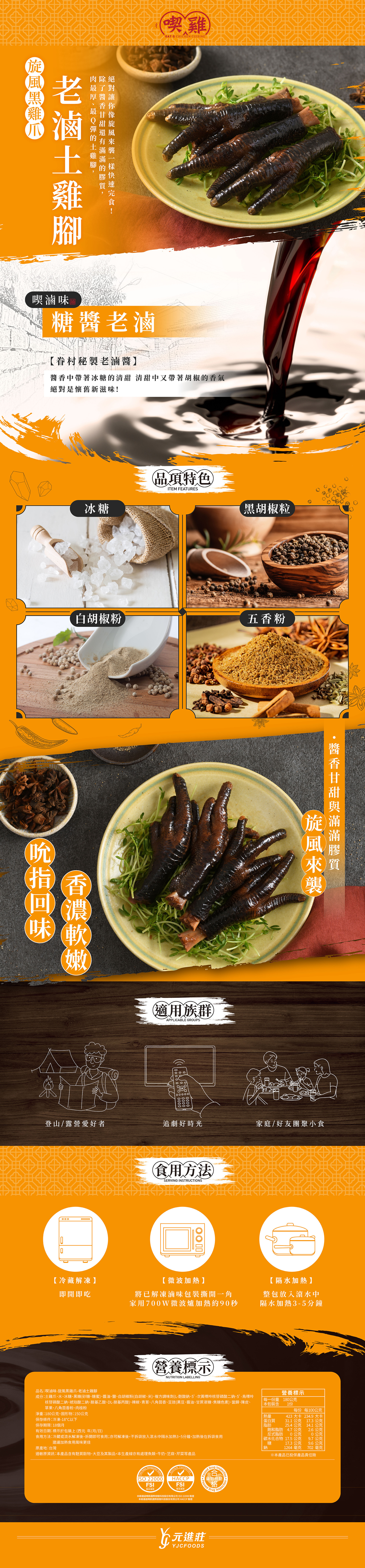 【喫雞】糖醬老滷 老滷土雞腳 180g/包│元進莊美食購