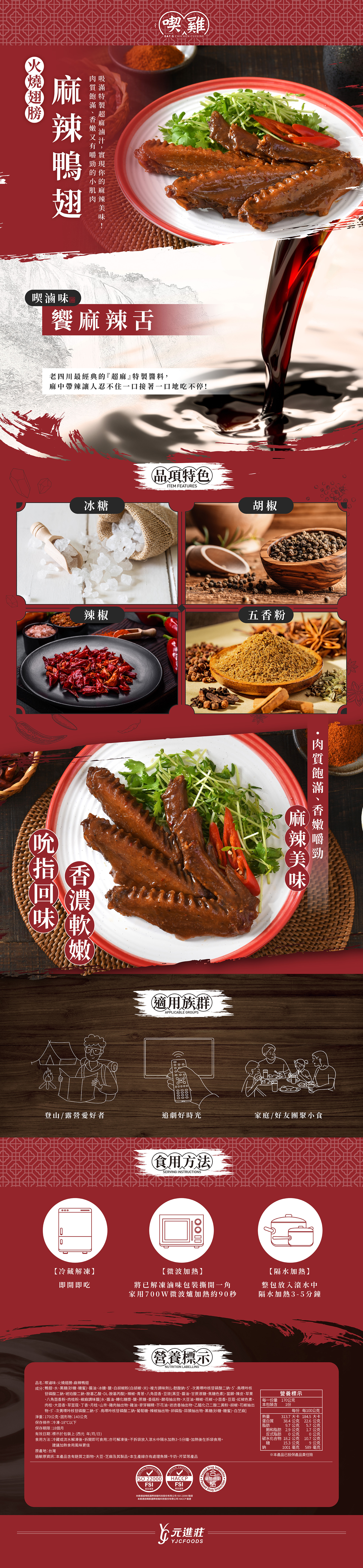 【饗麻辣舌】老四川最經典的『超麻』特製醬料,麻中帶辣讓人忍不住一口接著一口地吃不停! 【麻辣鴨翅】肉質飽滿、香嫩又有嚼勁的小肌肉吸滿特製超麻滷汁,實現你的麻辣美味!