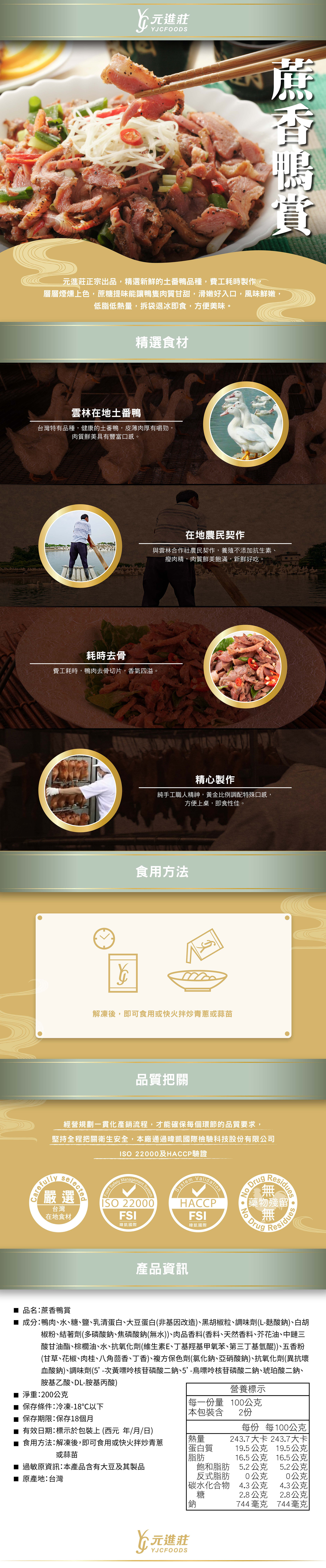 【元采珍饌】蔗香鴨賞 200g/包│元進莊美食購