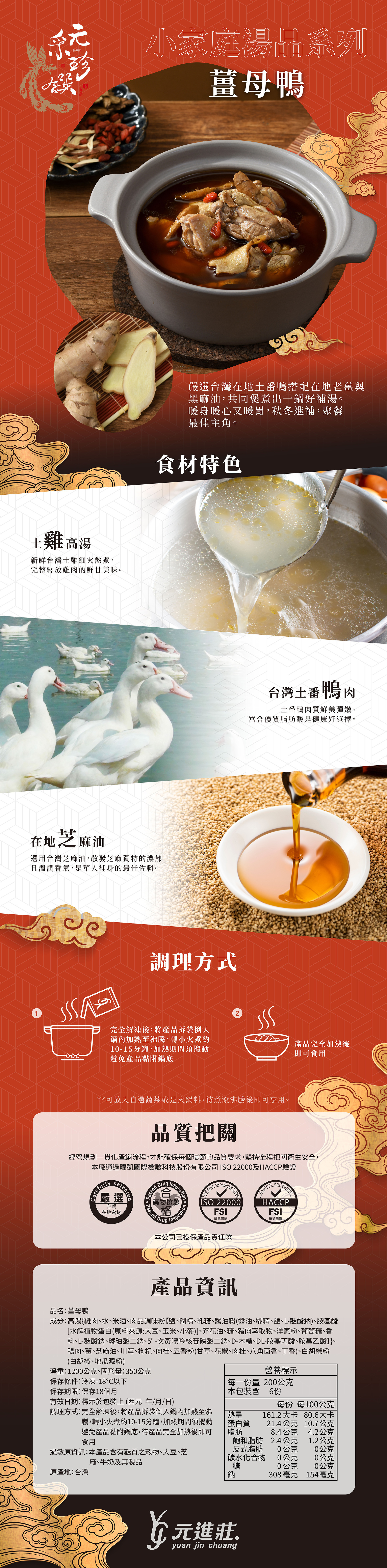 【元采珍饌】家庭湯品-薑母鴨 1200g/盒│元進莊美食購