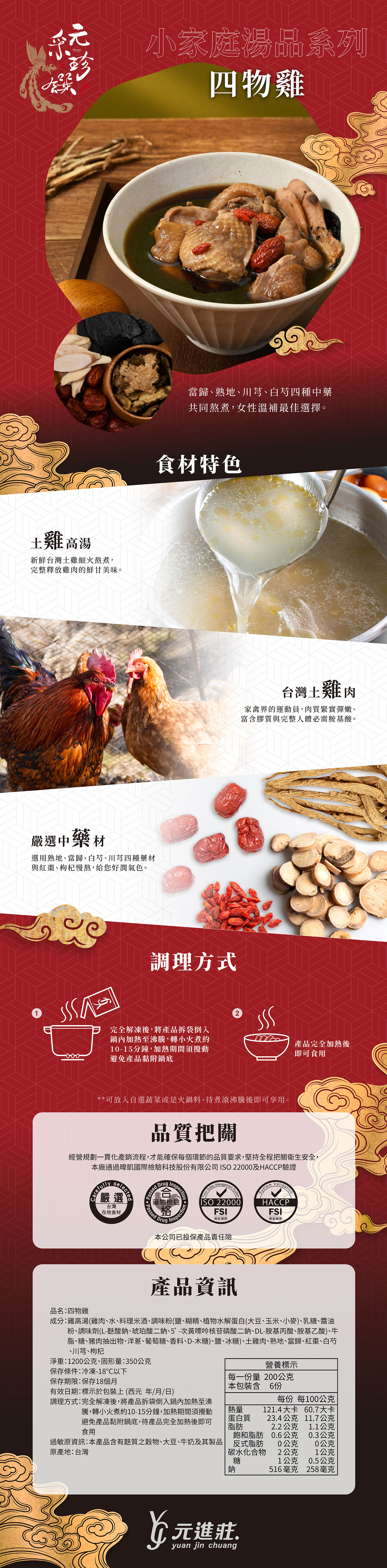 【元采珍饌】家庭湯品-四物雞湯 1200g/盒│元進莊美食購