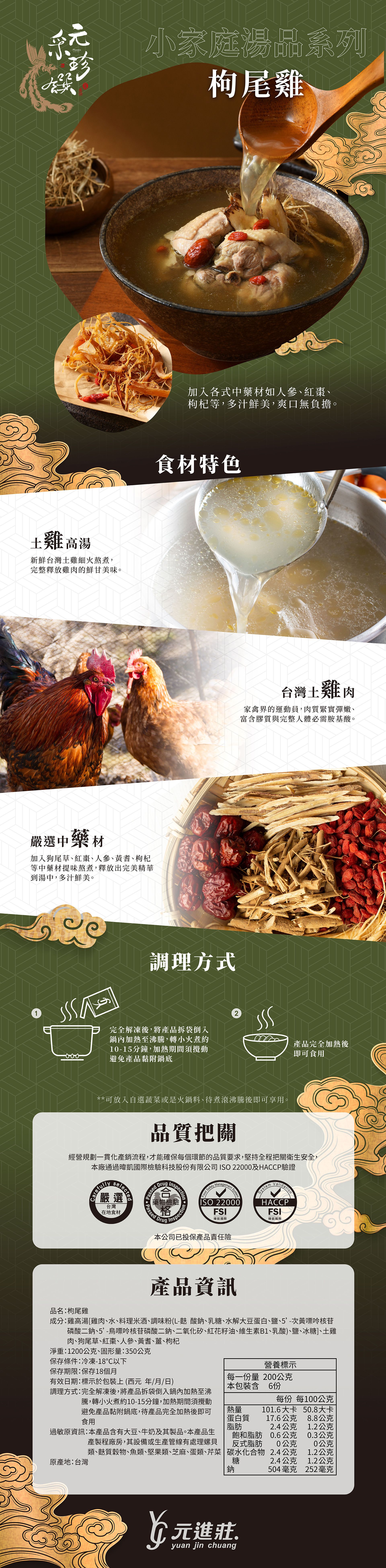【元采珍饌】家庭湯品-枸尾雞湯 1200g/盒│元進莊美食購