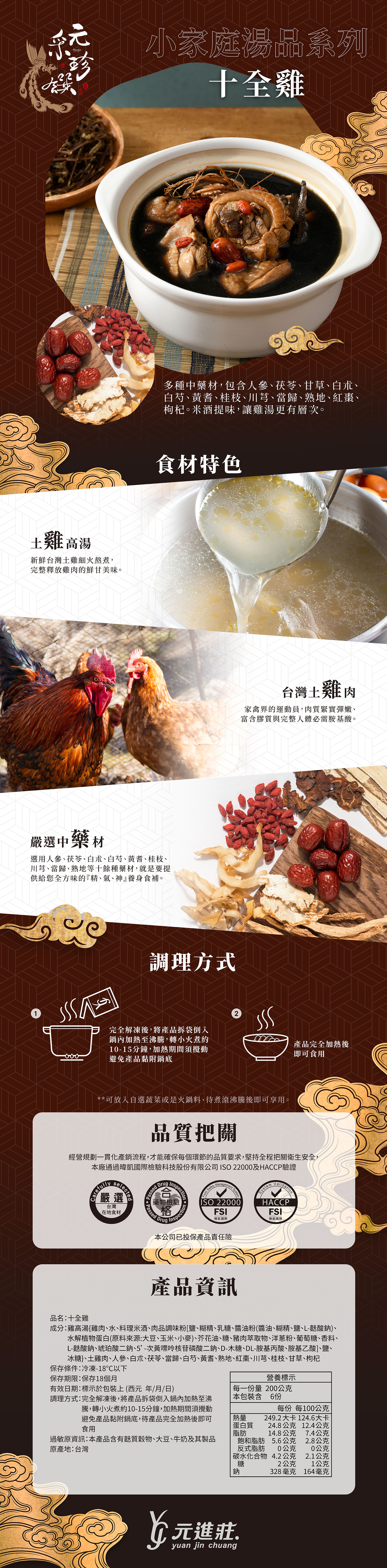 【元采珍饌】家庭湯品-十全雞湯 1200g/盒│元進莊美食購